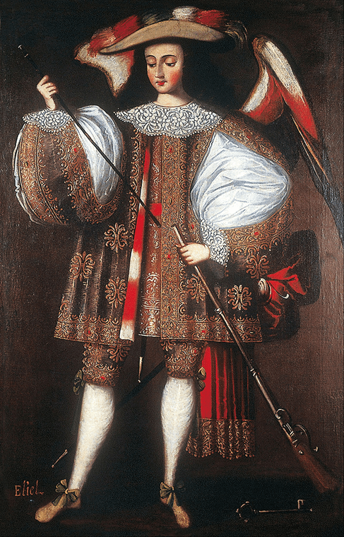 The ร ngeles arcabuceros are a series of works painted by Inca artists, originating from the colonial period in Spanish Peru, portraying a version of Catholic angels, holding specific models of Spanish guns from the fifteenth century and dressed as local Andean nobles.